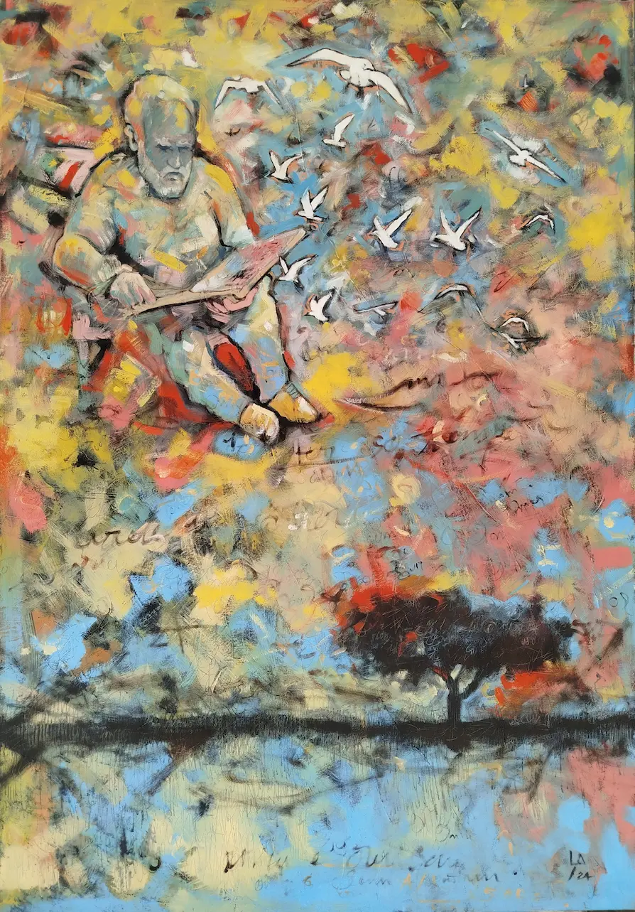 Estilo expressivo e atmosférico, com uma paleta de cores rica e uma composição que evoca tranquilidade e profundidade emocional.